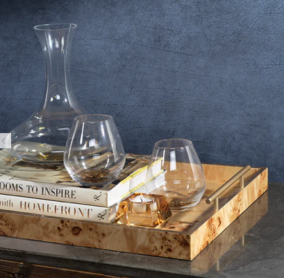 Leiden Burl Wood Rectangular Tray w/ Gold Handles