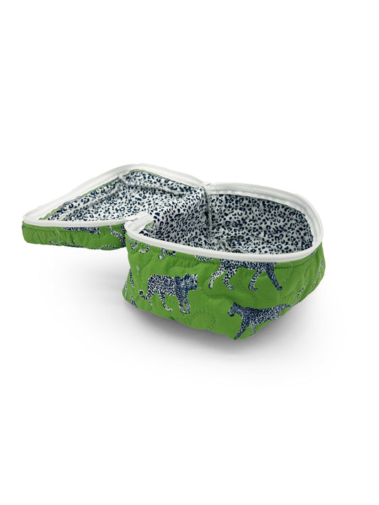 Leilani Leopard Green Quilted Lg Makeup Bag