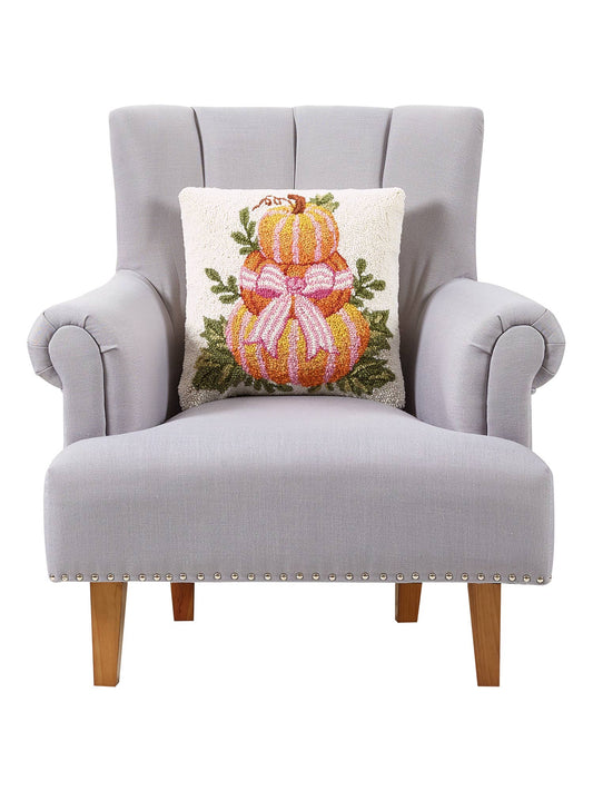 Pumpkin Stack w/Stripe Bow Hook Pillow