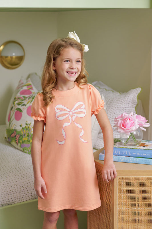 Short Sleeve Eliza's Applique Dress - Seashore Sorbet w/Pink Bow