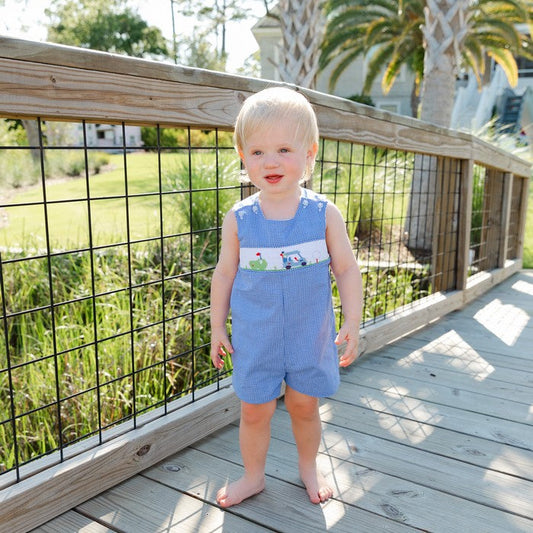 Smocked Footballs Shirt w/Blue Gingham Short Set