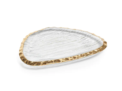 Textured Glass Organic Shape Plate w/ Gold Rim