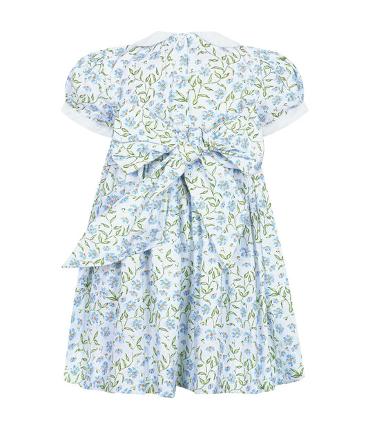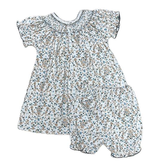 Blue Floral Hand Smocked Girls Bishop
