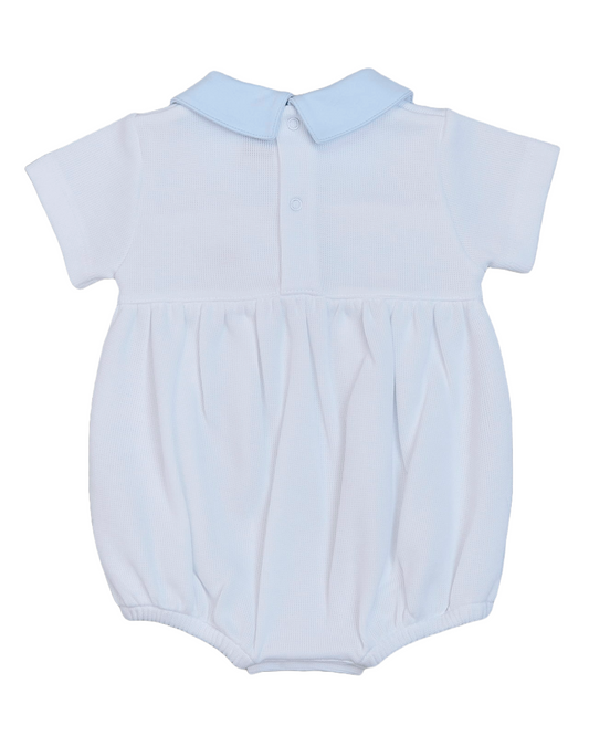 Boys Wave Smocked Romper - Blue/White