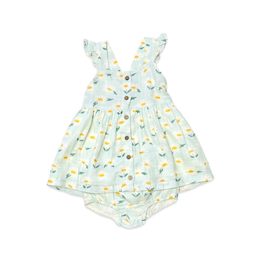 Daisies Ruffle Button Baby Dress+Bloomer - Organic Muslin