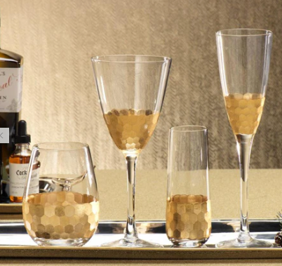 Fez Cut Stemless Champagne Flute w/ Gold Leaf