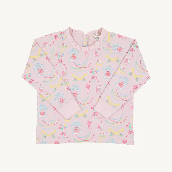 Your little one will look cute + stay cozy in our adorable Ruffle Cassidy Comfy Crewneck! Featuring Golden Birthday with Palm Beach Pink, she'll be ready for all birthday celebrations.