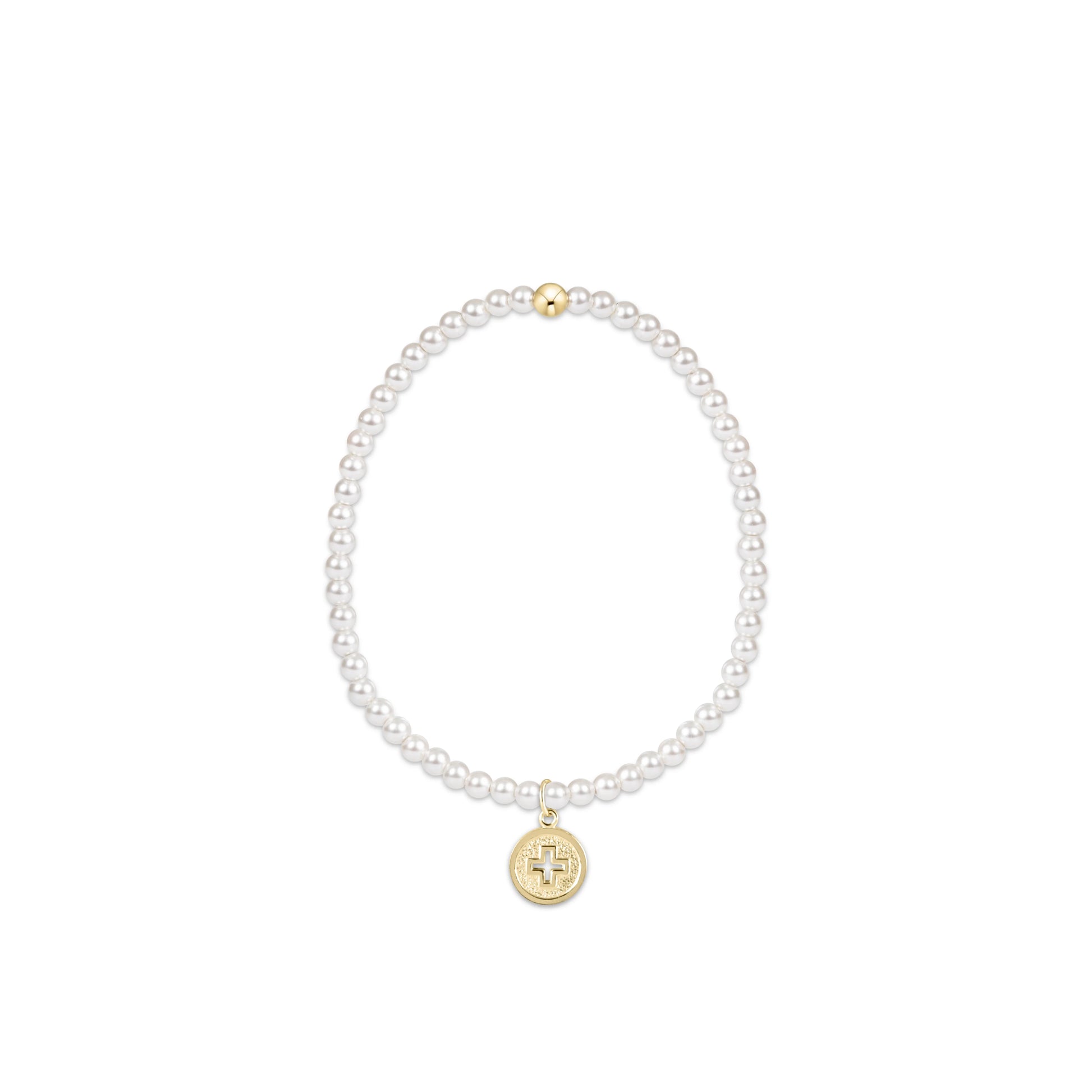 Classic Pearl 3mm Bead Bracelet Signature Cross Disc