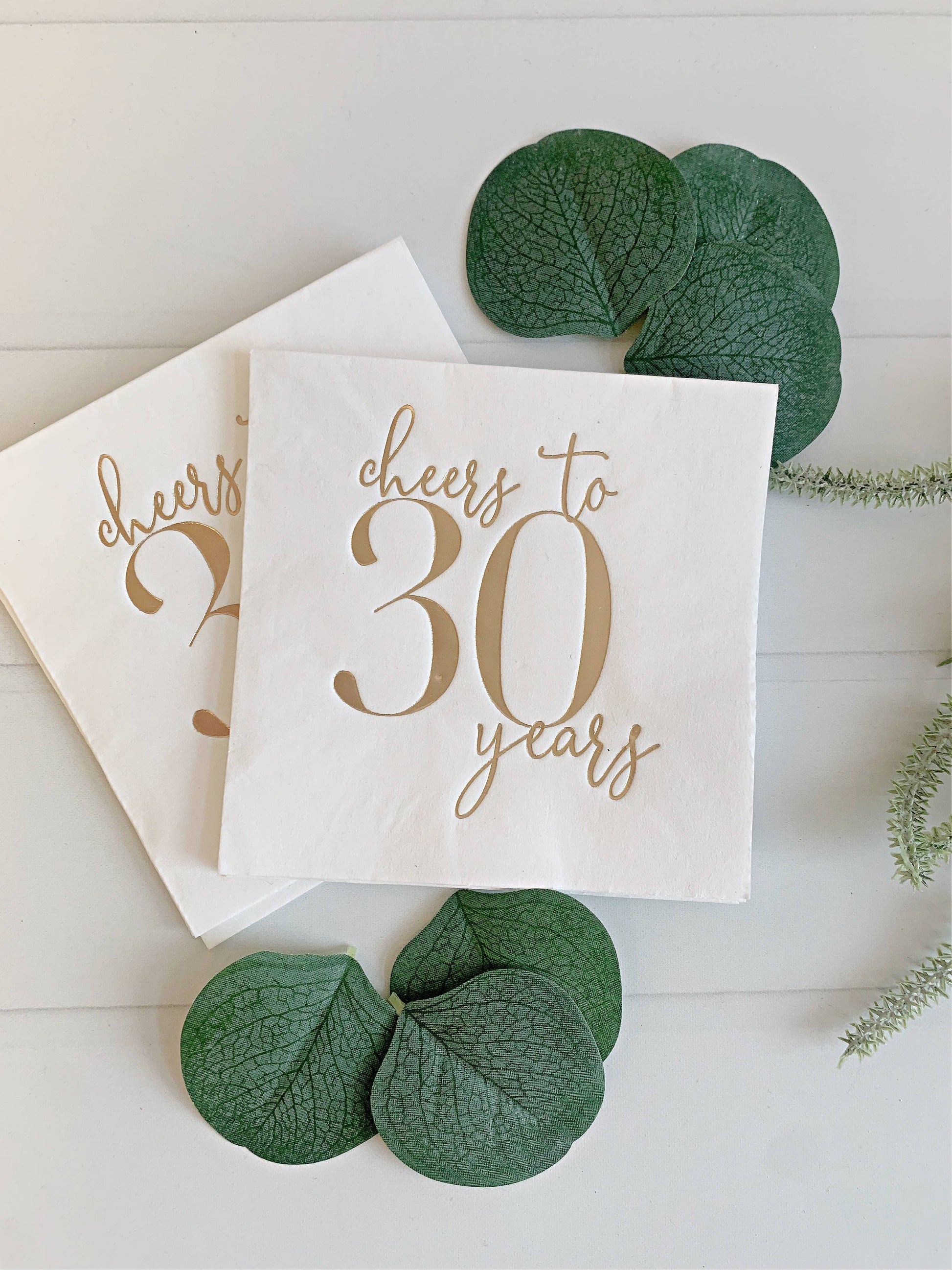 Cheers to 30 Years Cocktail Napkins - Gold on White