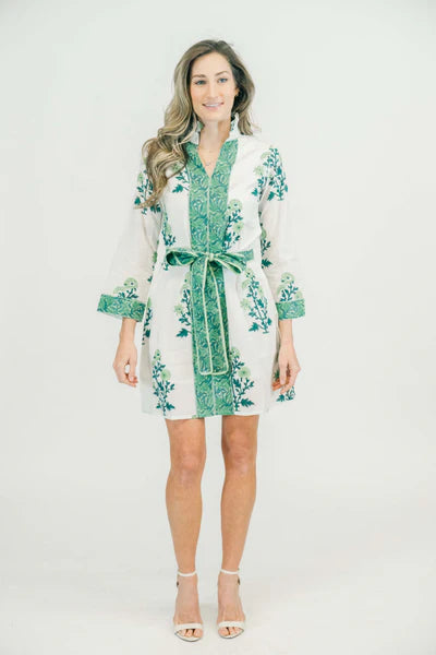 Introducing the French Quarters, a sophisticated blend of complimenting prints down the front and on the sleeves. With a self-tie belt to accentuate your figure, long bell sleeves for added elegance, and a ruffled collar for a touch of flair, this piece is a must-have.