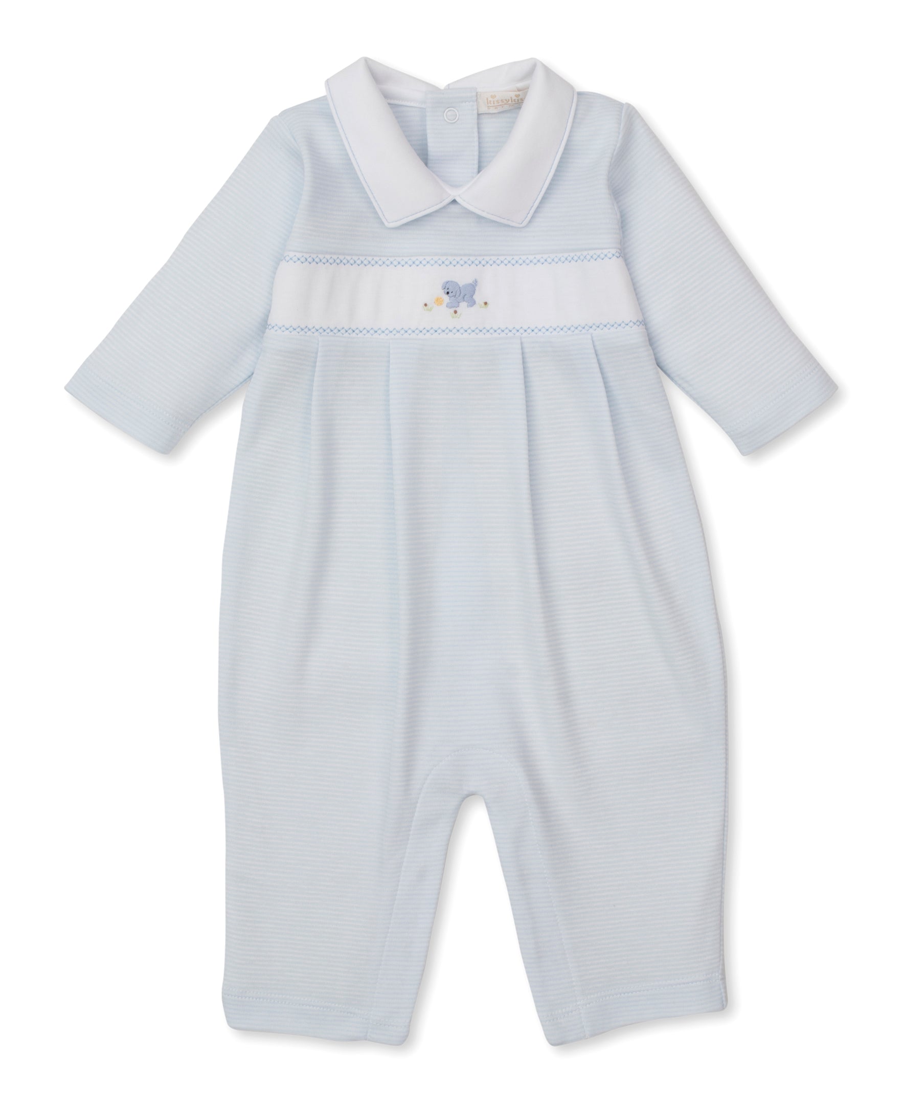 Playsuit w/ Hand Embossed Puppy Blue Stripe