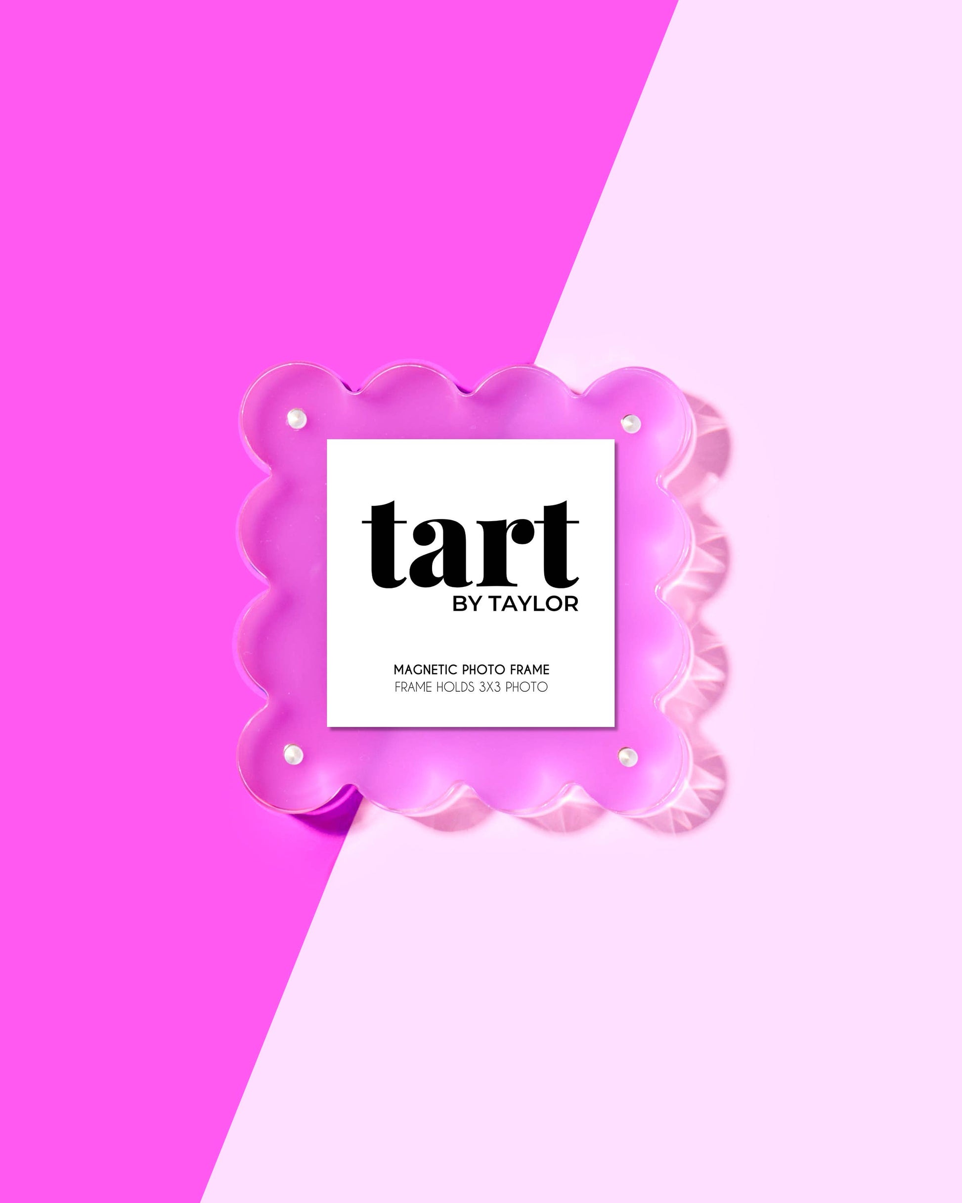 Show off your memories in a unique way with our Fuchsia Mini Acrylic Picture Frame! This acrylic scalloped frame adds a playful touch to your photos, making them stand out in any room. Great for nightstands, and desks plus they make for the perfect gift! -
