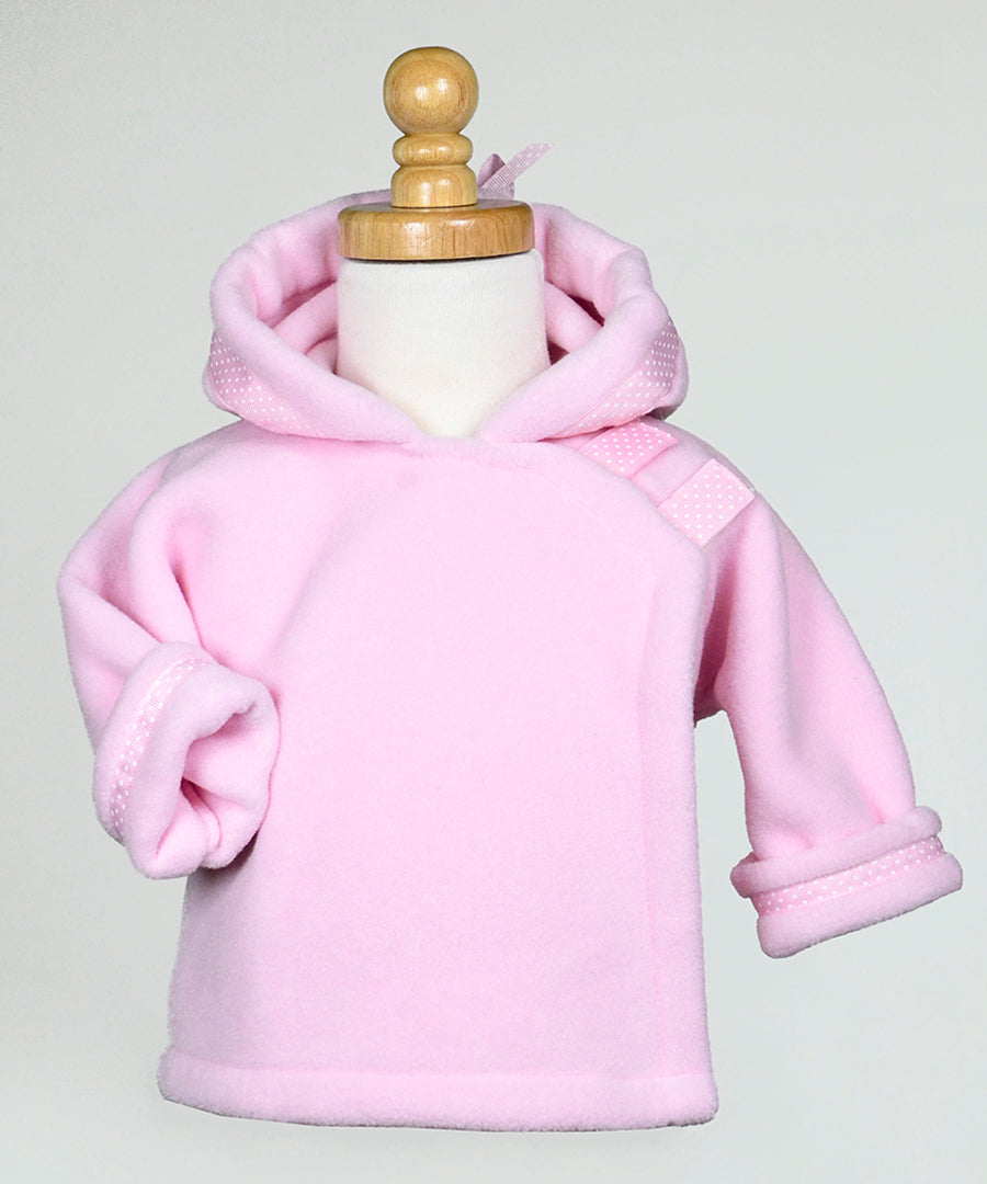 Widgeon’s classic Polartec fleece coat is possibly the best infant/toddler outerwear ever made. Flap-over-flap design has hook and loop close for easy on/off and double layer protection for the child’s chest area. The ingenious design allows for frustration free dressing and undressing. Grosgrain ribbon at the top of the hood provides a snug fit around the head on windy days. Made from Polartec® Classic 300 with DWR from Malden Mills to insure the best weight-to-warmth ratio possible. The rolled up sleeves and generous sizing allows for some growth before you need a bigger size. It has been a favorite baby gift for over 30 years! Add your own embroidery to create a very special giftable item. 100% Polyester. Machine Washable. Imported.