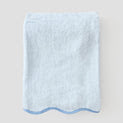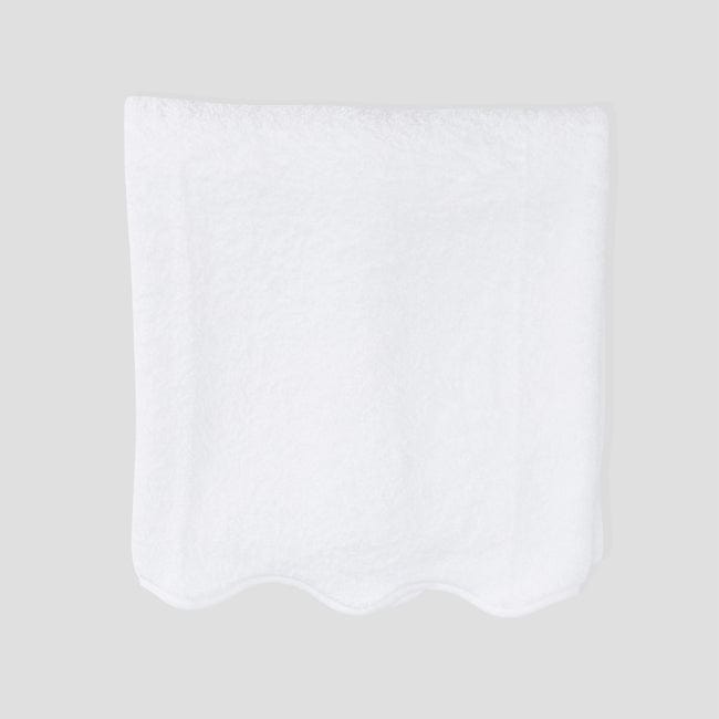 Enhance bath time with our whimsical scallop bath towel. It features hand-cut and hand-finished details of unmatched craftsmanship, like our top-selling Signature Towels. Available in Light Blue, White, and Grey, the two shorter edges of each towel are adorned with this beloved pattern. Soft, fluffy, and cloud-light, these towels combine both style and comfort.